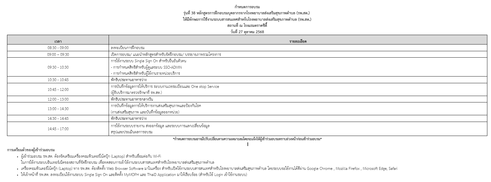 หลักสูตรการฝึกอบรมบุคลากรจากโรงพยาบาลส่งเสริมสุขภาพตำบล (รพ.สต.) โครงการ โครงการพัฒนาระบบคลาวด์กลางด้านสาธารณสุขของประเทศไทย |